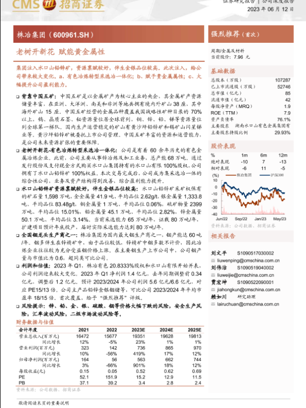 【海通证券】【20230612】株冶集团600961.SH老树开新花赋能黄金属性-16页 行业研究