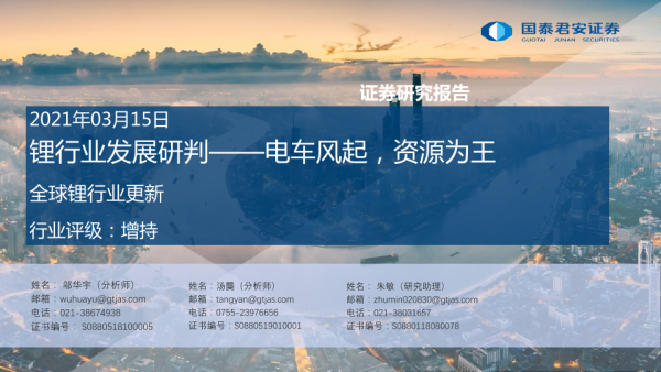 【国泰君安证券】【20210315】全球锂行业更新:锂行业发展研判——电车风起,资源为王-41页 行业研究