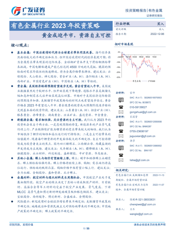 【广发证券】【20221206】有色金属行业2023年投资策略:黄金或迎牛市,资源自主可控-33页 行业研究