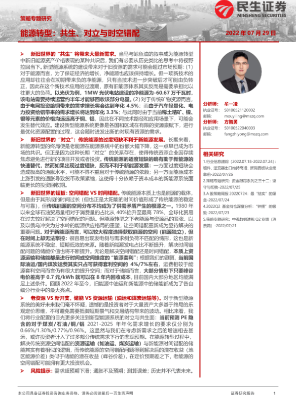 【民生证券】【20220729】策略专题研究:能源转型,共生、对立与时空错配-23页 行业研究