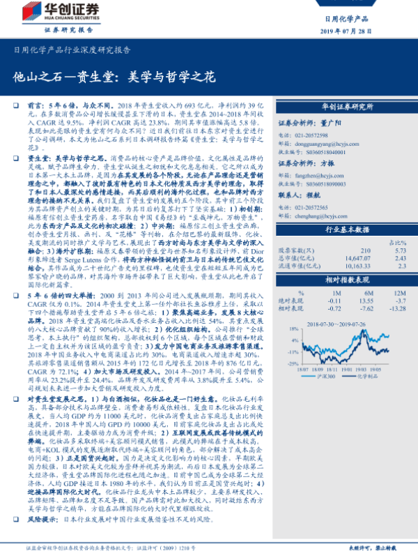 【华创证券】【20190728】20190728-华创证券-日用化学产品行业深度研究报告:他山之石—资生堂:美学与哲学之花-22页 行业研究