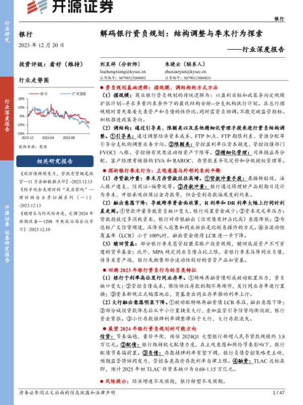【开源证券】【20231220】银行行业深度报告:解码银行资负规划:结构调整与季末行为探索-47页 行业研究
