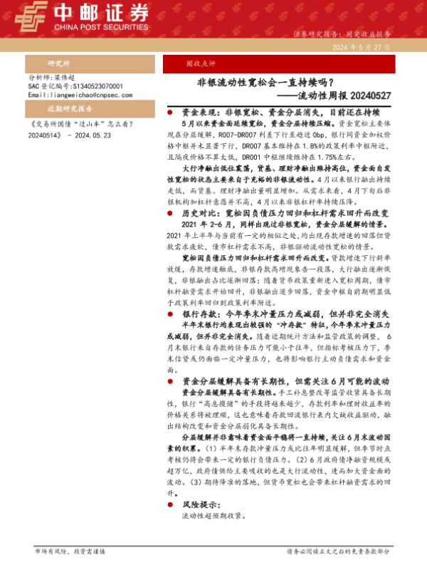 【中邮证券】【20240527】流动性:非银流动性宽松会一直持续吗?-24页 行业研究