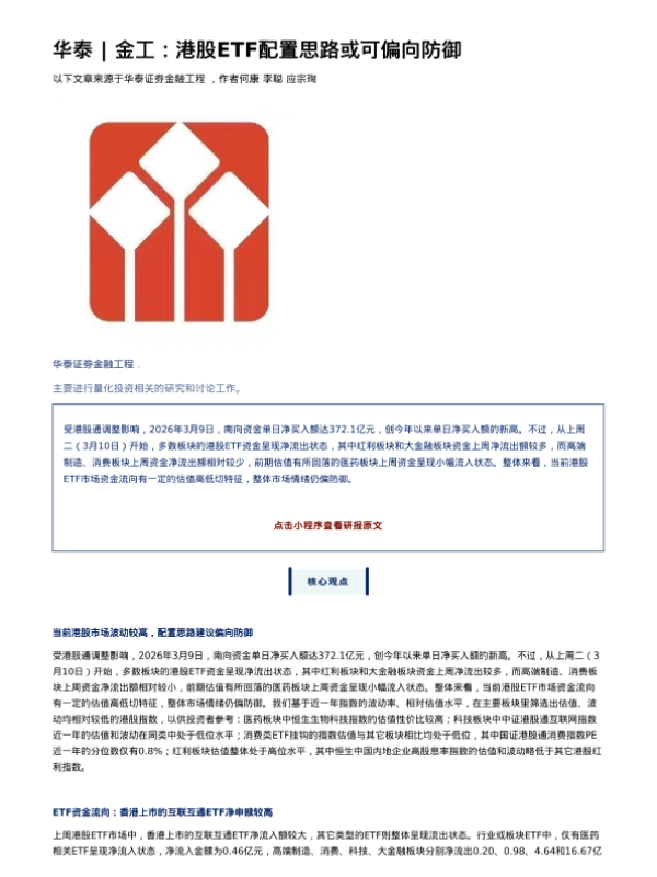 【华泰证券金融工程】【202603】港股ETF配置思路或可偏向防御-9页 证券期货研究报告