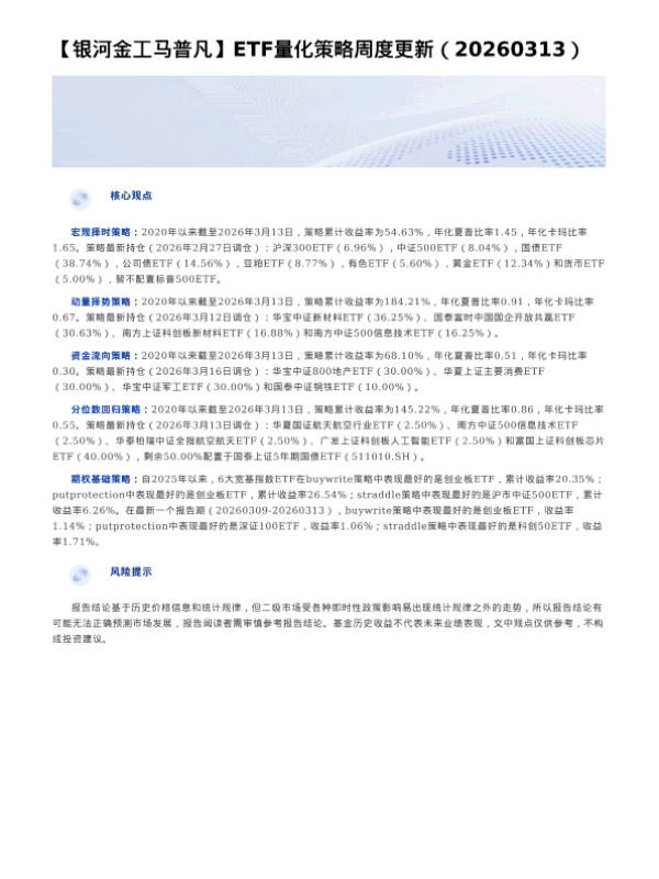 【银河证券】【202603】【银河金工马普凡】ETF量化策略周度更新(20260313)-3页 证券期货研究报告