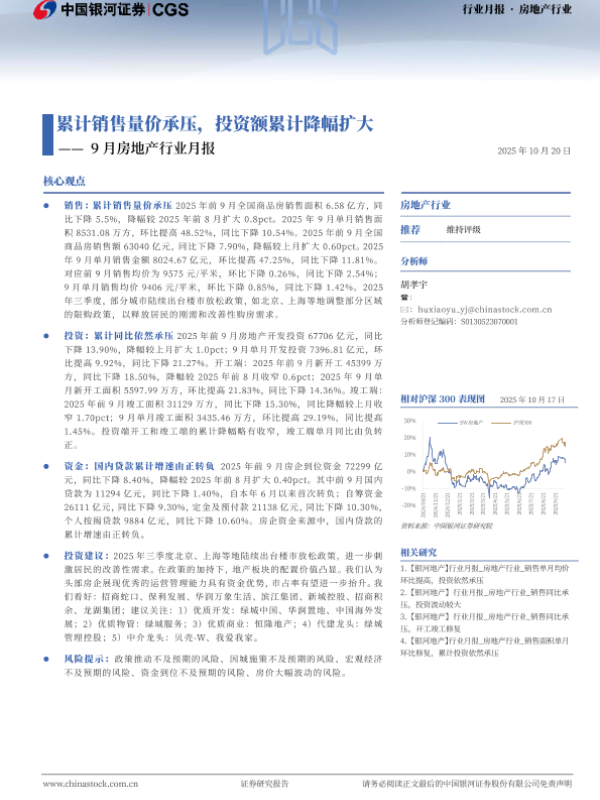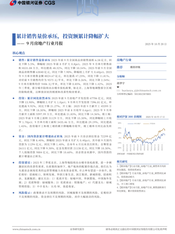 【银河证券】【202510】20251020-中国银河-9月房地产行业月报:累计销售量价承压,投资额累计降幅扩大.pdf-12页 证券期货研究报告