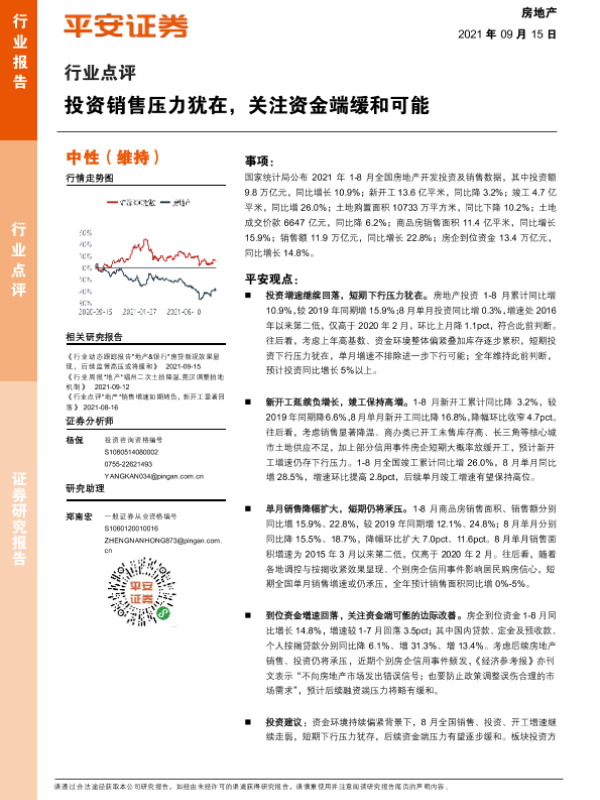 【平安证券】【20210915】投资销售压力犹在,关注资金端缓和可能-6页 行业研究