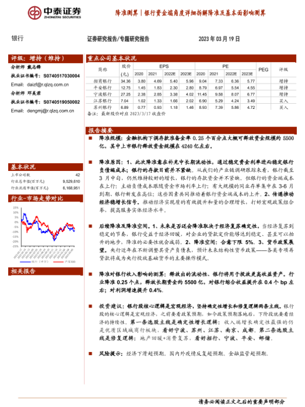 【中泰证券】【20230319】降准测算|银行资金端角度详细拆解降准及基本面影响测算-13页 行业研究