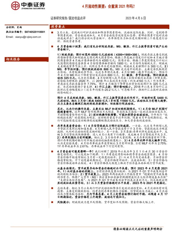 【中泰证券】【20230406】4月流动性展望:会重演2021年吗?-16页 行业研究