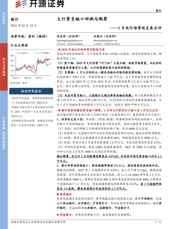 【开源证券】【20250218】银行业1月央行信贷收支表点评:大行资负缺口回溯与测算-11页 行业研究
