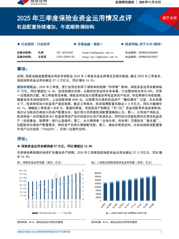 【国信证券】【202511】2025年三季度保险业资金运用情况点评:权益配置持续增加,年底顺势调结构-7页 证券期货研究报告