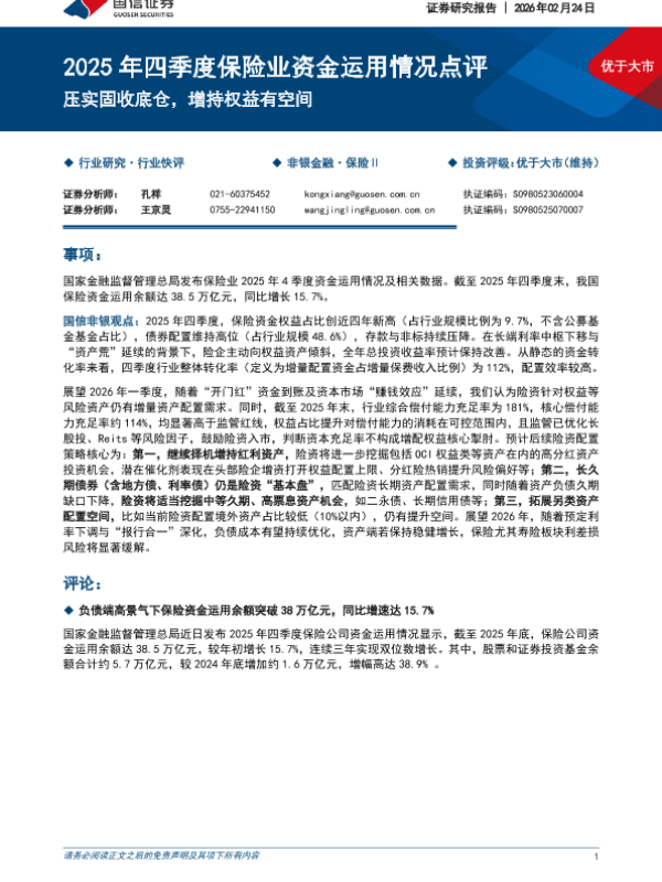 【国信证券】【2025】2025年四季度保险业资金运用情况点评_压实固收底仓_增持权益有空间-7页 证券期货研究报告