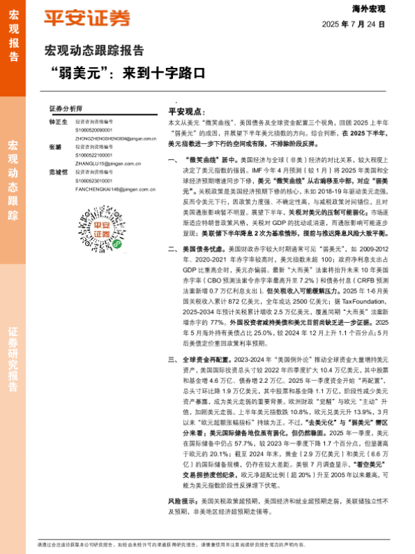 【平安证券】【20250724】“弱美元”:来到十字路口-10页 宏观策略