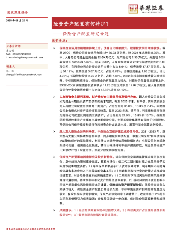 【华源证券】【202509】险资资产配置有何特征?-25页 证券期货研究报告