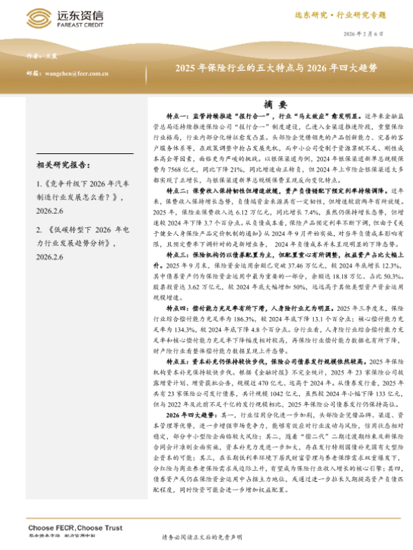 【远东资信】【202602】2025年保险行业的五大特点与2026年四大趋势-10页 行业研究