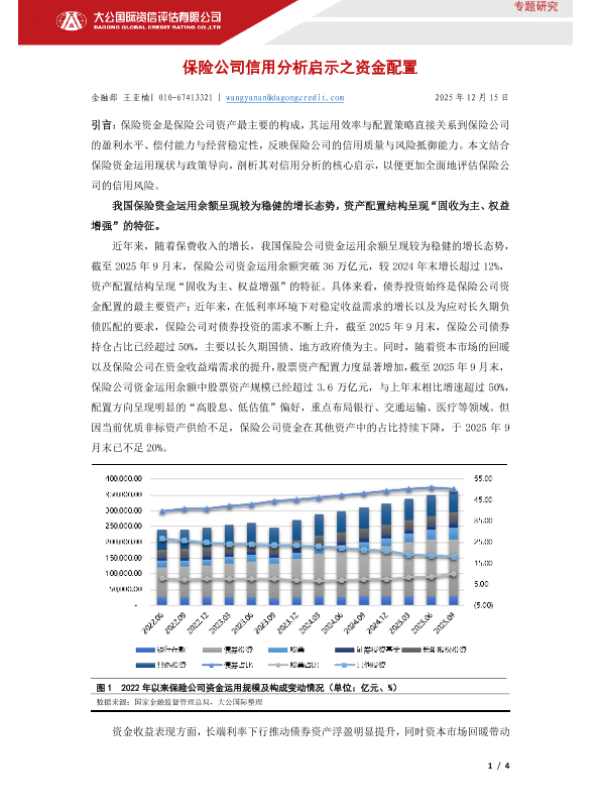 【大公国际】【202512】保险公司信用分析启示之资金配置-4页 行业研究