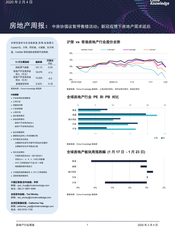 【China Knowledge】【20200204】房地产周报:中房协倡议暂停售楼活动;新冠疫情下房地产需求延后-21页 行业研究
