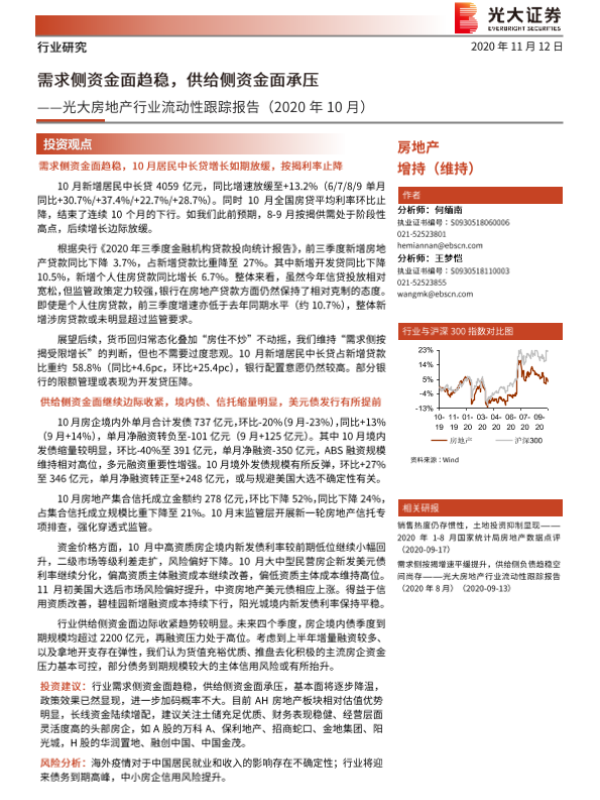 【光大证券】【20201112】房地产行业流动性跟踪报告-10页 行业研究