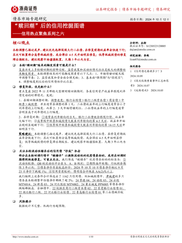【浙商证券】【20241012】信用热点聚焦系列之六:“赎回潮”后的信用挖掘图谱-10页 行业研究