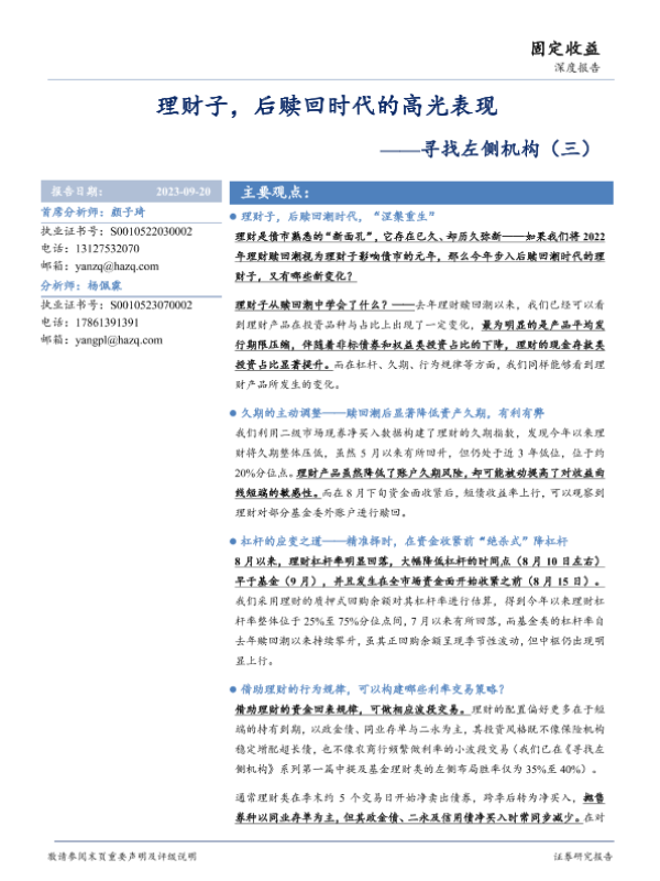 【华安证券】【20230920】寻找左侧机构(三):理财子,后赎回时代的高光表现-22页 行业研究