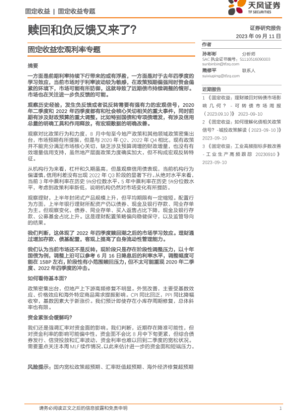 【天风证券】【20230911】固定收益宏观利率专题:赎回和负反馈又来了?-20页 行业研究