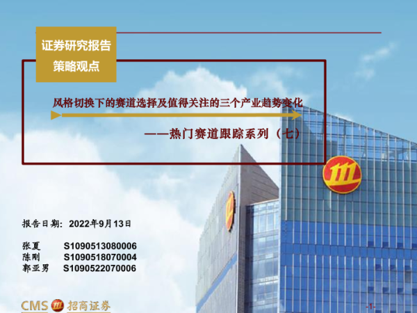 【海通证券】【20220913】热门赛道跟踪系列(七):风格切换下的赛道选择及值得关注的三个产业趋势变化-62页 行业研究