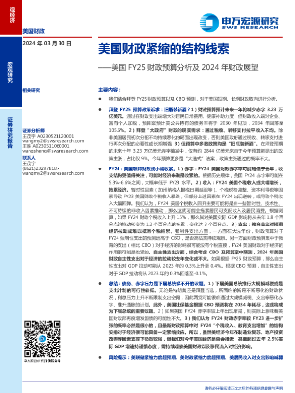 【申万宏源】【20240330】美国FY25财政预算分析及2024年财政展望:美国财政紧缩的结构线索-25页 行业研究