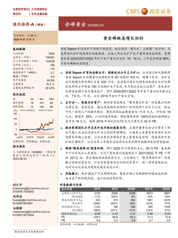 【海通证券】【20200701】赤峰黄金-600988.SH-黄金稀缺高增长标的-21页 公司研究