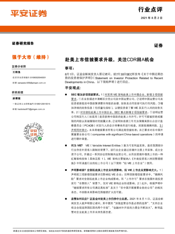 【平安证券】【20210802】证券:赴美上市信披要求升级,关注CDR回A机会-4页 行业研究