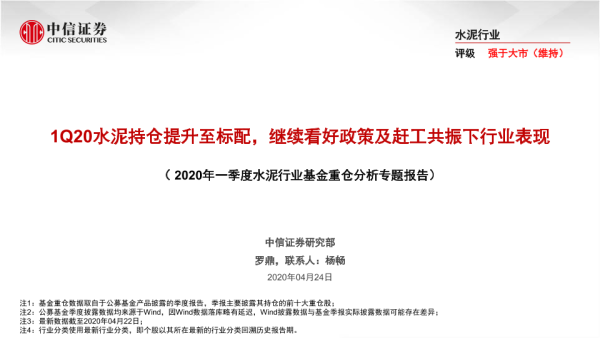 【中信证券】【20200424】2020年一季度水泥行业基金重仓分析专题报告-17页 行业研究