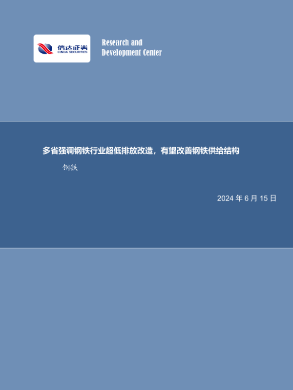 【信达证券】【20240615】多省强调钢铁行业超低排放改造,有望改善钢铁供给结构-18页 行业研究