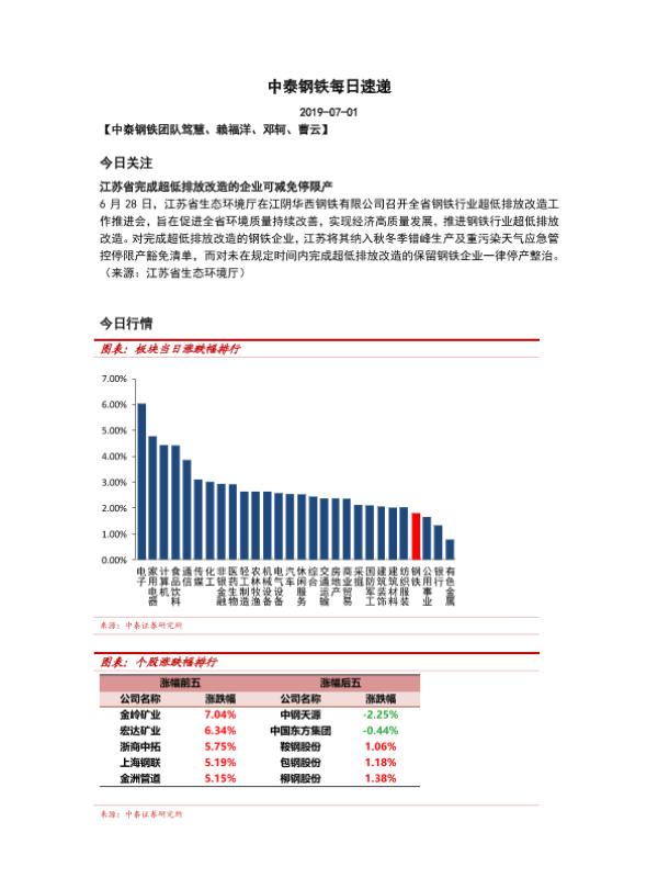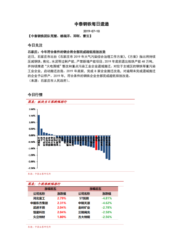 【中泰证券】【20190710】中泰钢铁每日速递-5页 行业研究