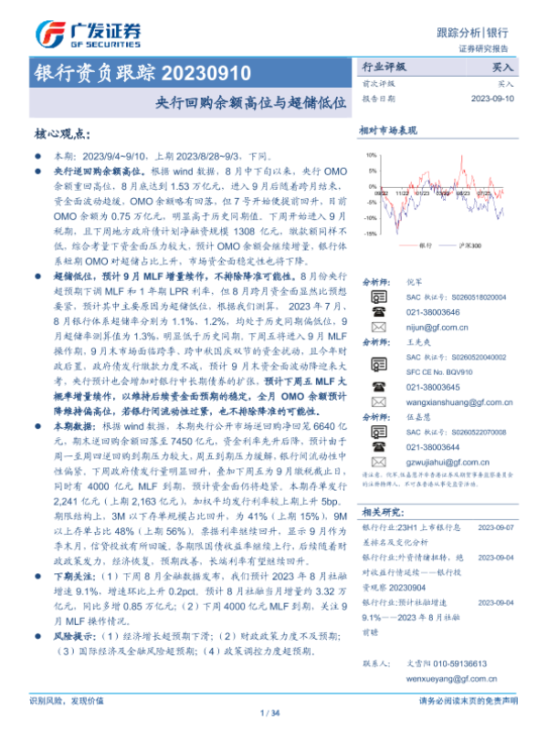 【广发证券】【20230910】银行资负跟踪:央行回购余额高位与超储低位-34页 行业研究