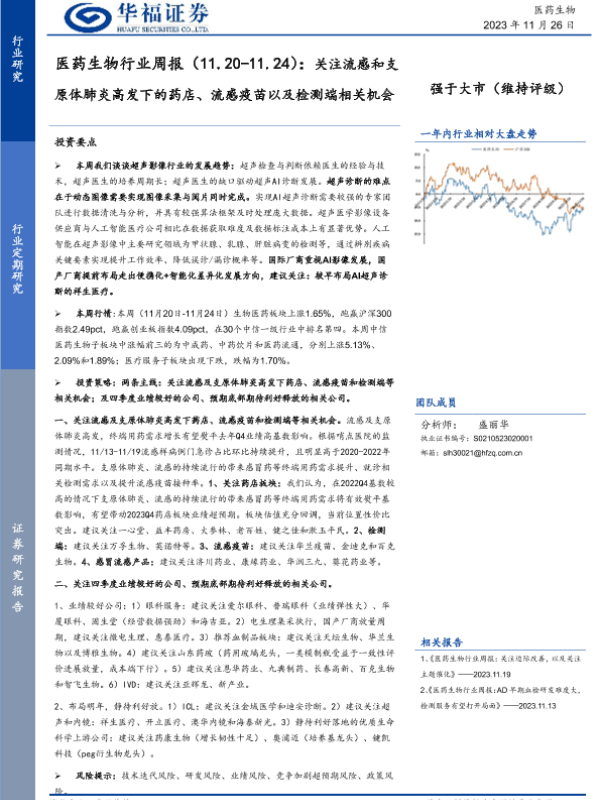 【华福证券】【20231126】医药生物行业周报:关注流感和支原体肺炎高发下的药店、流感疫苗以及检测端相关机会-13页 行业研究