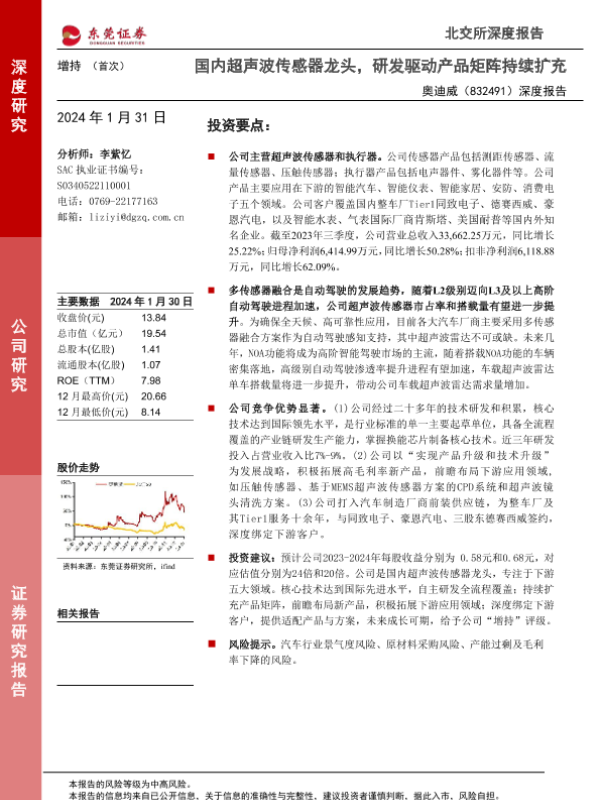 【东莞证券】【20240131】国内超声波传感器龙头,研发驱动产品矩阵持续扩充-22页 行业研究
