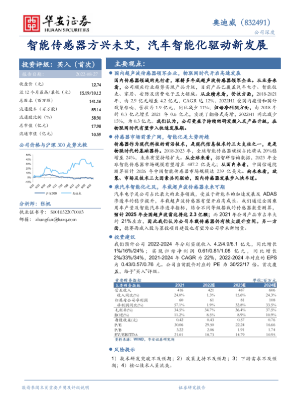 【西南证券】【20220805】国内超声波传感器领航者_乘风汽车智能化未来_可期-27页 行业研究
