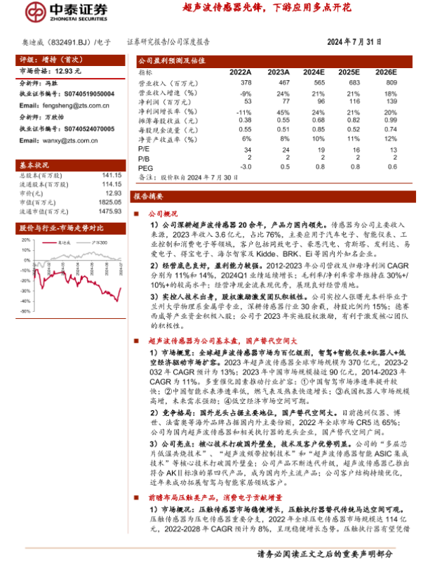 【中泰证券】【20240731】奥迪威(832491)超声波传感器先锋,下游应用多点开花-30页 行业研究