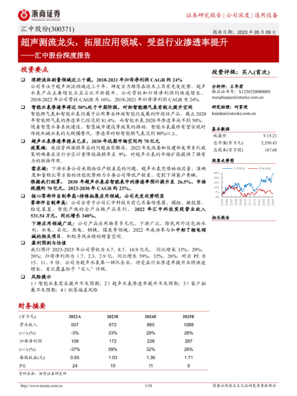 【浙商证券】【20230509】汇中股份深度报告_超声测流龙头_拓展应用领域_受益行业渗透率提升-28页 行业研究