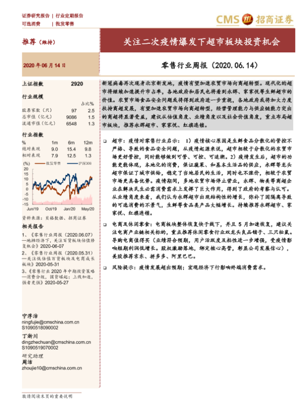 【海通证券】【20200614】零售行业周报:关注二次疫情爆发下超市板块投资机会-8页 行业研究