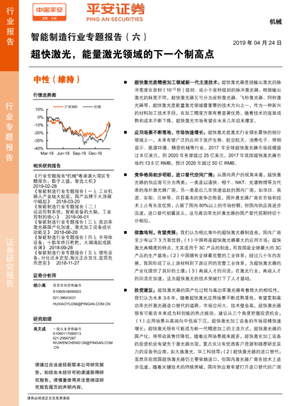 【平安证券】【20190424】智能制造行业专题报告(六):超快激光,能量激光领域的下一个制高点-26页 行业研究