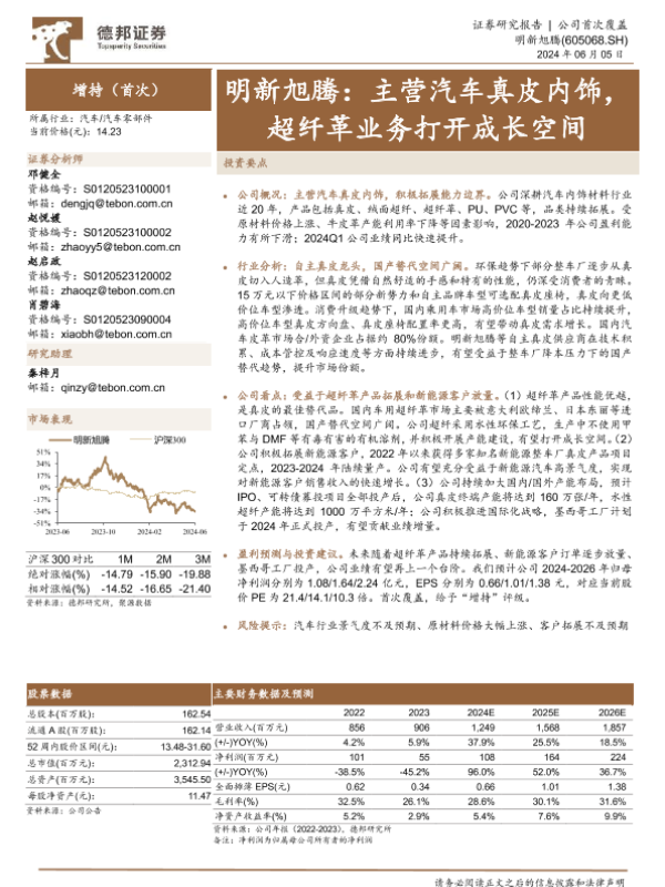 【德邦证券】【20240605】明新旭腾:主营汽车真皮内饰,超纤革业务打开成长空间-21页 行业研究