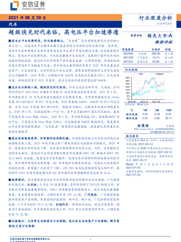 【安信证券】【20210630】汽车行业深度分析:超级快充时代来临,高电压平台加速渗透-32页 行业研究