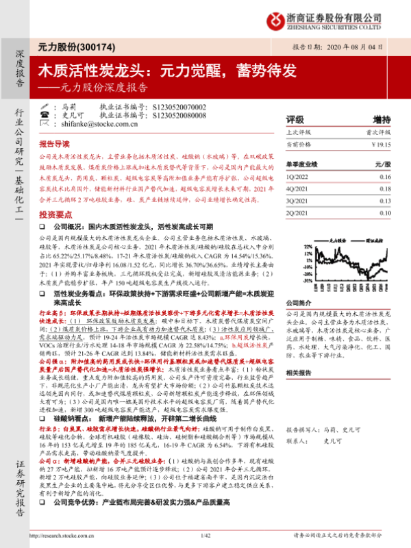 【浙商证券】【20220804】20220804-浙商证券-元力股份-300174-深度报告:木质活性炭龙头,元力觉醒,蓄势待发-42页 行业研究