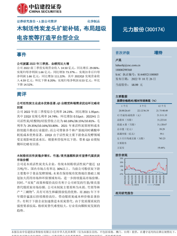 【中信建投证券】【20221026】木制活性炭龙头扩能补链,布局超级电容炭等打造平台型企业-4页 行业研究