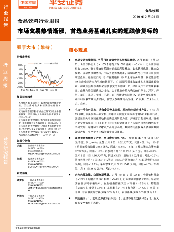 【平安证券】【20190224】食品饮料行业周报:市场交易热情渐涨,首选业务基础扎实的超跌修复标的-6页 行业研究