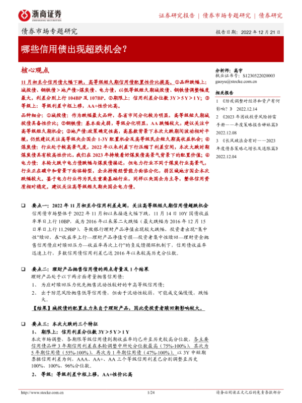 【浙商证券】【20221221】债券市场专题研究:哪些信用债出现超跌机会?-24页 行业研究