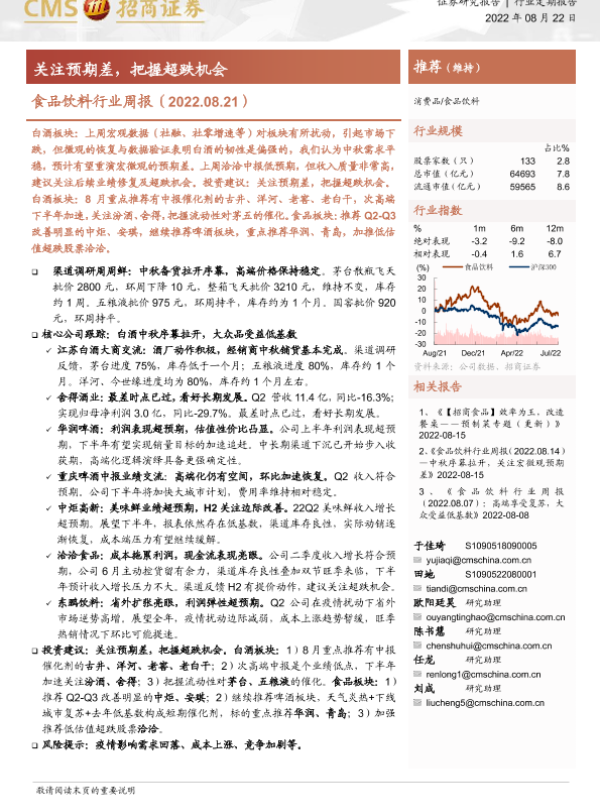 【海通证券】【20220822】食品饮料行业周报:关注预期差,把握超跌机会-7页 行业研究