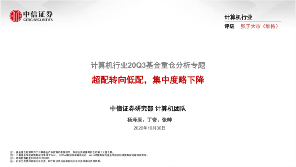 【中信证券】【20201030】计算机行业20Q3基金重仓分析专题:超配转向低配,集中度略下降-15页 行业研究