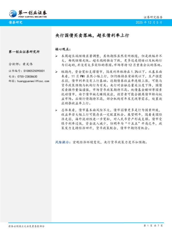 【第一创业证券】【202312】央行国债买卖落地,超长债利率上行-7页 证券期货研究报告