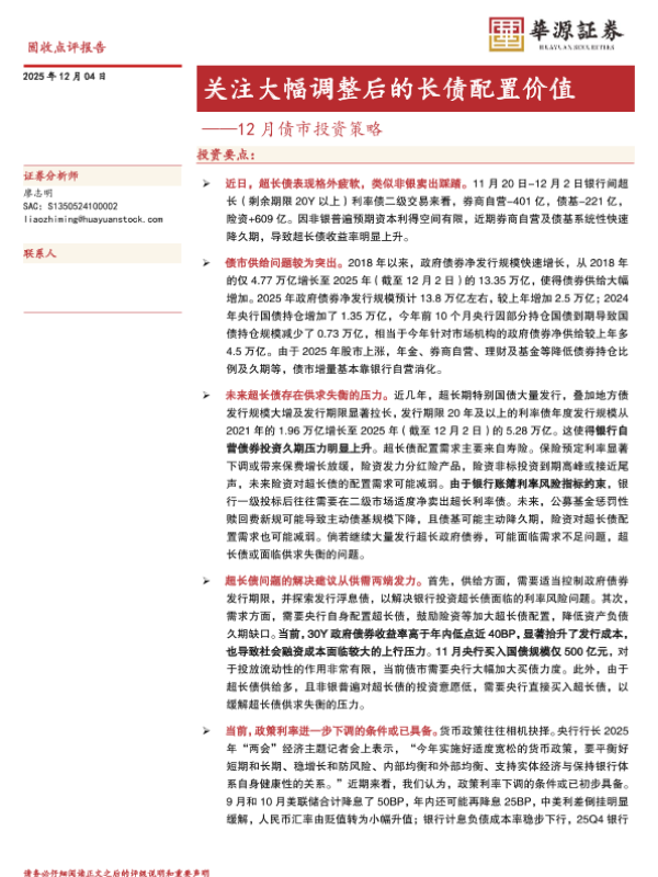 【华源证券】【2025】关注大幅调整后的长债配置价值——12月债市投资策略-7页 证券期货研究报告